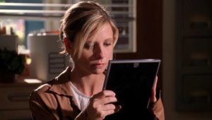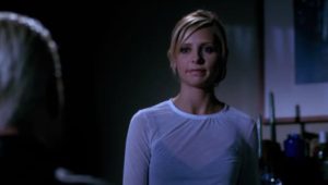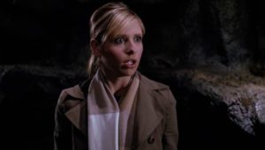 After being kicked out of her house, Buffy walks alone and breaks into another house to get some sleep. Spike and Andrew return with news about the vineyard, but when Spike finds out what happened he hits Faith and leaves, trying to pick up Buffy’s scent. The First pays Faith a visit in the form of the Mayor, but she isn’t fooled. It tries to unbalance her by saying that Buffy still, and will always think of her only as a killer. Robin finds Faith and the two share a moment, which leads to them having sex. When Spike finds Buffy, they talk about her being rejected. She says that everytime she makes a decision, someone dies and that maybe Faith is best in charge. She tells him to leave, but he refuses, telling her what he knows about the vineyard and that he loves her. She tells him she just wants to be held, so they fall asleep in each other’s arms. The next morning Buffy pays Caleb a visit, prepared for what he throws at her. He tries to hit her time and time again, but is unable to since Buffy uses her superior speed against him. Finally Buffy discovers the item Caleb tried to hide from her.